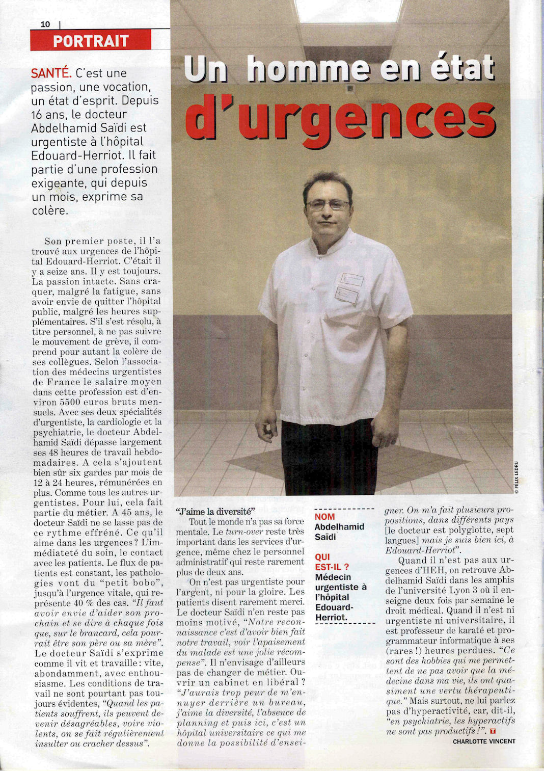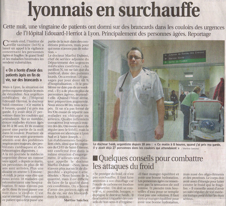 LE PROGRES : "Reportage aux Urgences du Pavillon N Hopital Edouard Herriot Lyon"